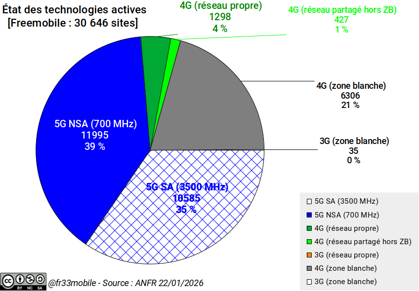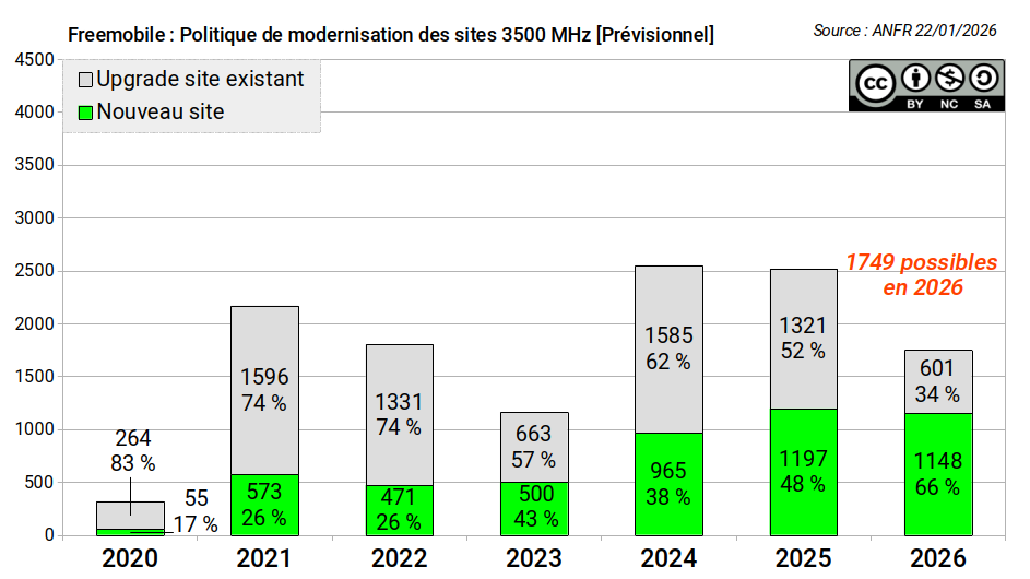 Freemobile dispose d'un portefeuille de 1479 nouveaux sites en projet approuvé (prévus avec la fréquence 3500 MHz) et de 747 sites existants (également programmés en large bande).