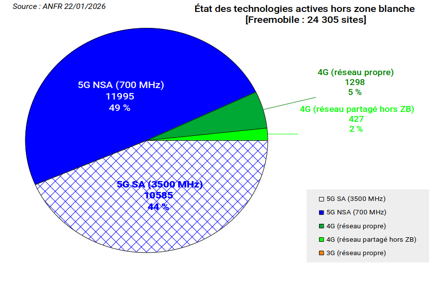A titre ce comparaison, à ce jour, le portefeuille de Freemobile avec 12828 sites prévus ou actifs en bande haute reste en phase avec les 3 autres opérateurs (15987, 12723 et 12695).