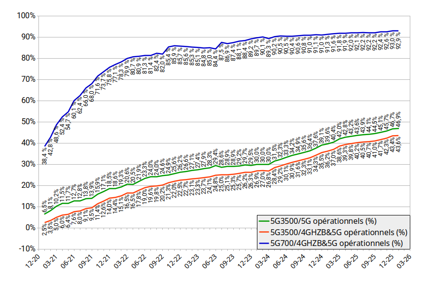 L'obligation de l'ARCEP de 10500 sités équipés en 3500 MHz a ainsi pu être finalisée au 31 décembre 2025.