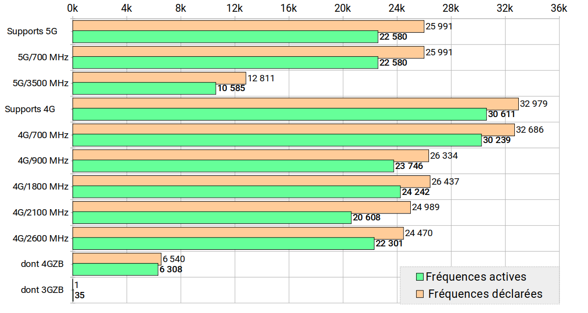 L'objectif de 3000 sites émettant dans la fréquence 3,5 GHz à partir du 31 décembre 2022 a été largement respecté avec 4337 antennes en service à cette date.